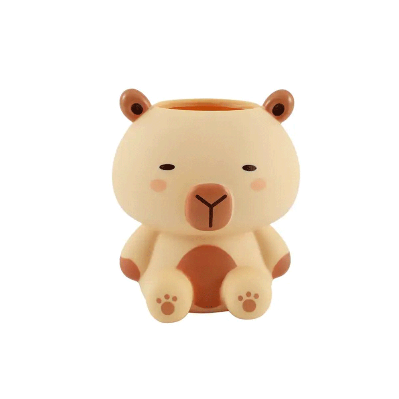 Praktična čaša za olovke u obliku Capybara, idealna za dječji pisaći stol. Prikladna je za spremanje olovaka, škara, markera itd. Čuvati će red na dječjem stolu.