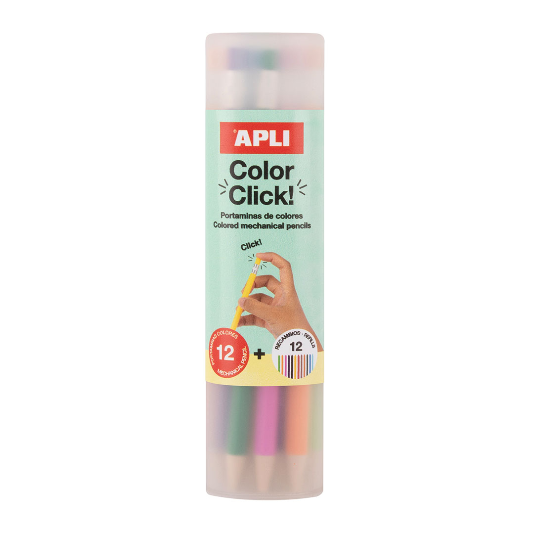 Click olovke u boji mina 2,6 mm set od 12 boja Apli – Mina izlazi kao i kod tehničke olovke. Bojice su izuzetno kvalitetne, te kod crtanja ne morate snažno tiskati da bi ostavile jaki trag boje.