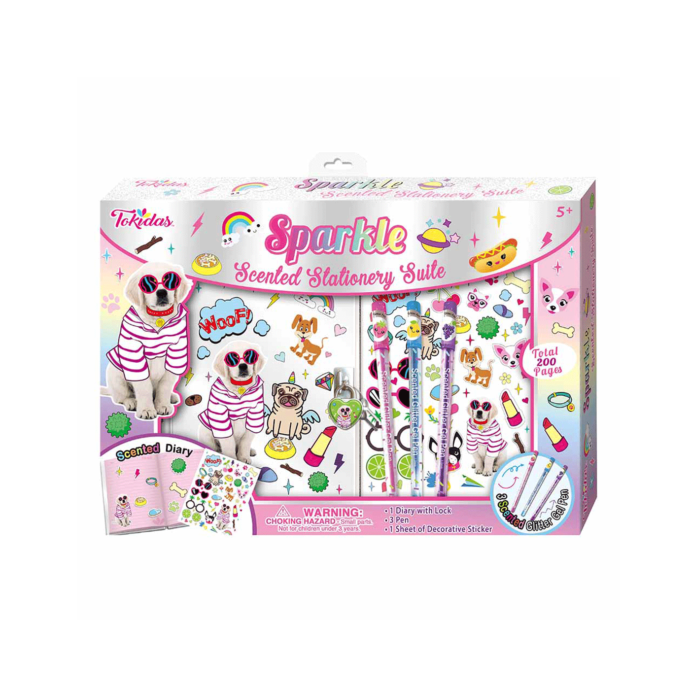 Dnevnik s lokotom i set za ukrašavanje papira – 3 x glitter gel pen i naljepnice