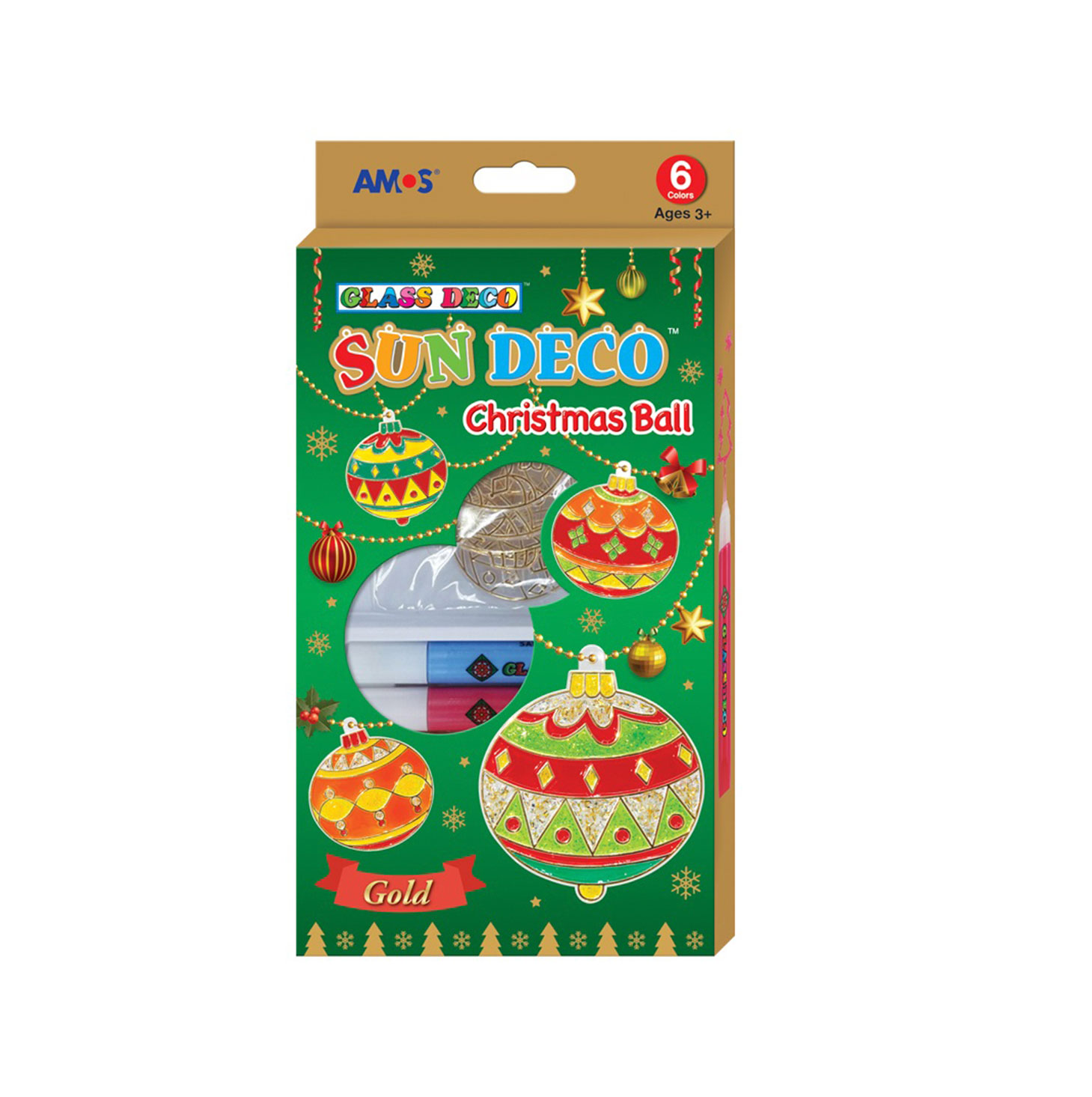 – set od 6 boja za crtanje po staklu i konture za ukrašavanje sa motivom božićnih kuglica