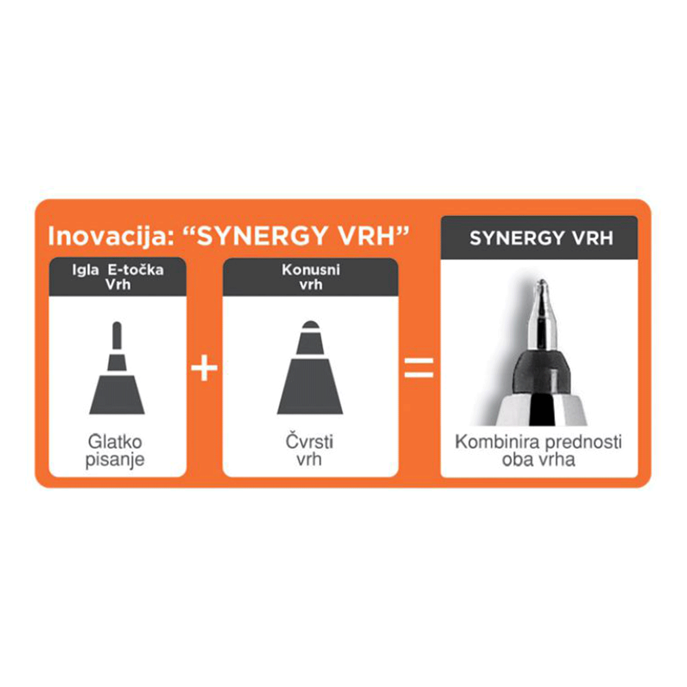 ppromjer kuglice: 0,5 mm; širina ispisa: 0,25 mm; ergonomski gumirani grip; plastično tijelo olovke; piši-briši-ponovi model; termo-osjetljiva tinta na bazi gela; pritisni mehanizam; rezervni uložak BLS-FRP5-S3; tinta na višim temperaturama postane transparentna ili se obriše sa gumicom na vrhu rolera; na niskim temperaturama (-10°C) tinta se ponovno pojavljuje; Inovativan vrh (Synergy tip) koji objedinjuje svojstva tankog (glatko pisanje) i debelog vrha (dobar početak pisanja i čvrsti vrh)