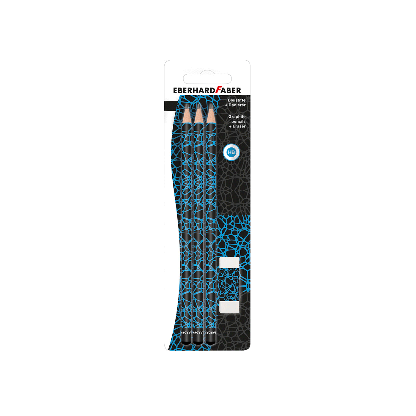 Olovka grafitna HB 3 kom+gumica set Eberhard Faber Plavo Crna