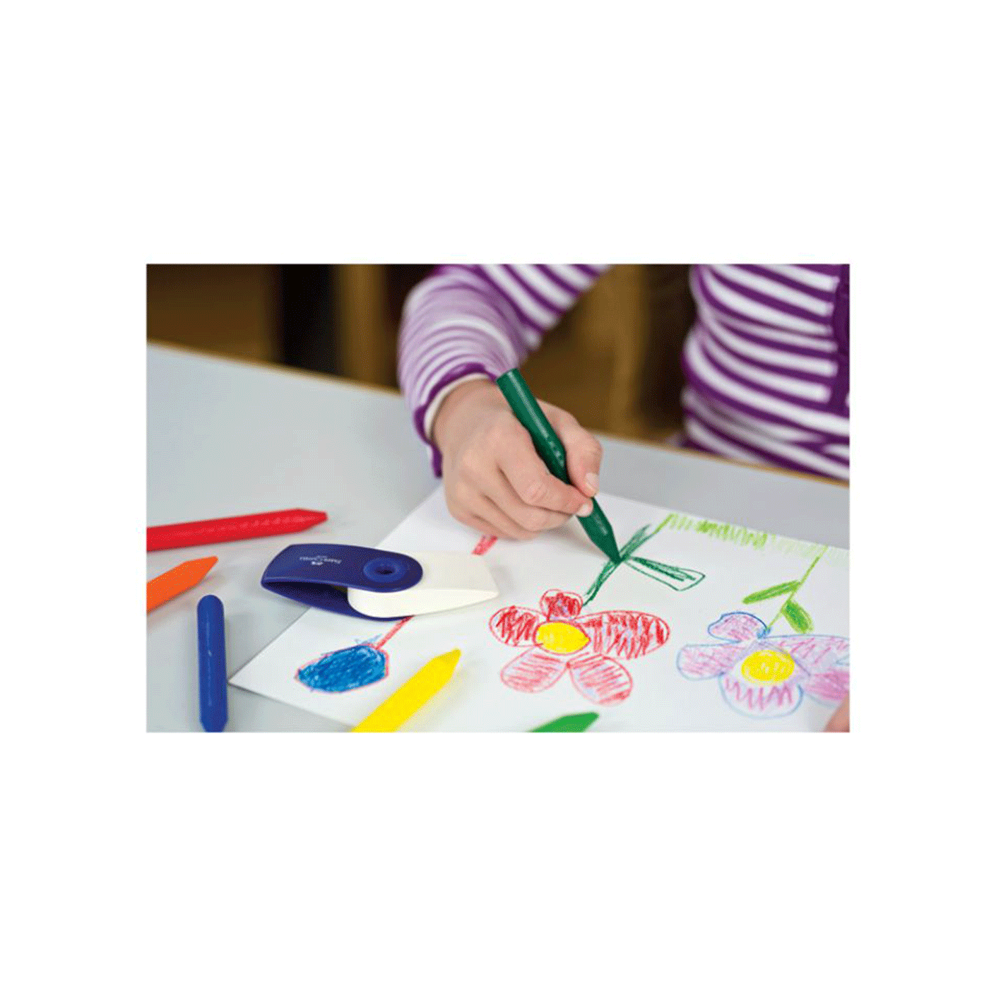 trokutaste; ergonomske; mogu se brisati sa većine vrsta papira; Grip dizajn; ruke ostaju čiste; ne ostavljaju mrlje; ne mrve se; potiču kreativnost i finu motoriku; set od 12 boja; kartonska kutija; blister