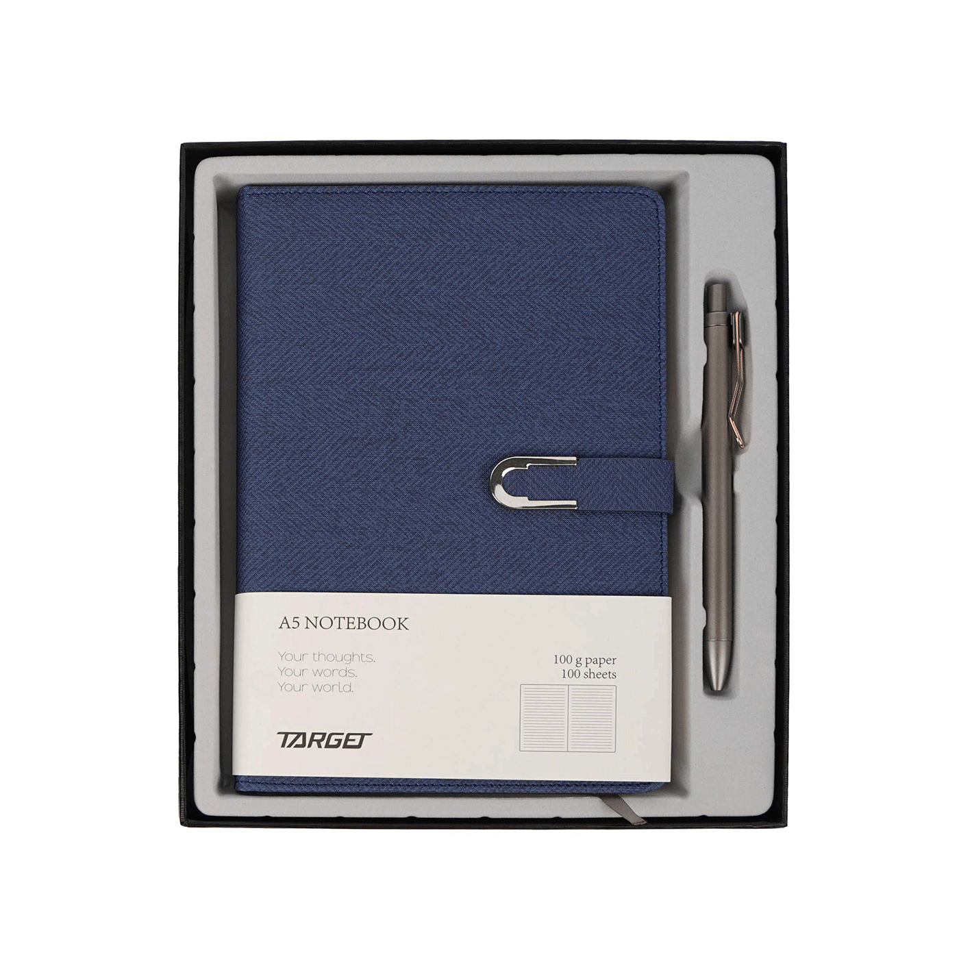 Poklon set u kutiji Rokovnik A5 s olovkom i kopčom plavi Target