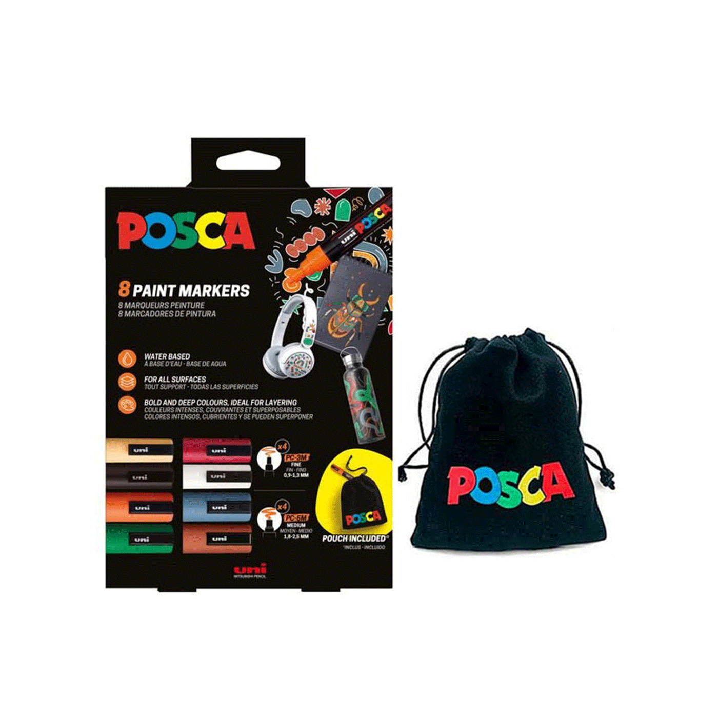 Svestrani set POSCA markera u 8 živopisnih boja za personalizaciju, ukrašavanje i izražavanje kreativnosti na svim površinama.