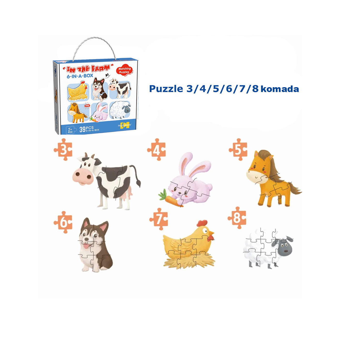 Puzzle za najmlađe 6 slika In the farm – sastavi slike od 3,4,5,6,7,8 komada