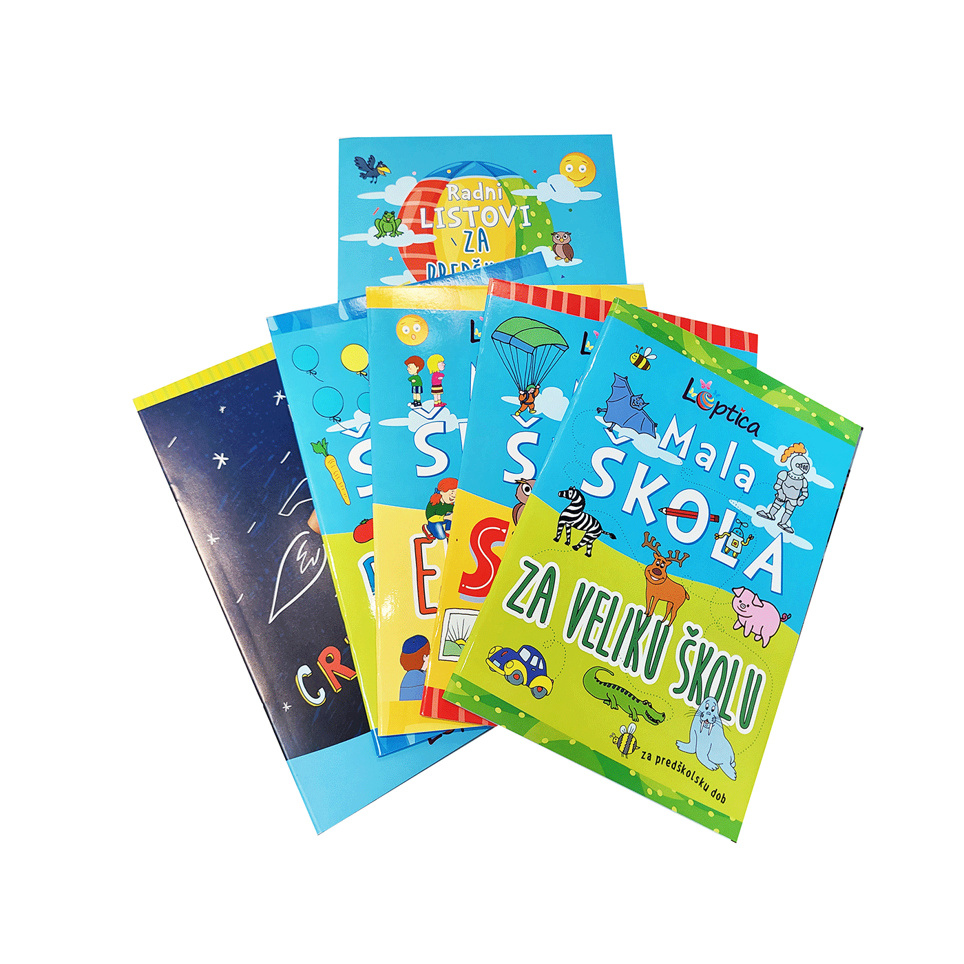 U kompletu 4 vježbenice: “Mala škola za veliku školu”, “Mala škola brojeva”, Mala škola slova” i “Mala škola emocija”.