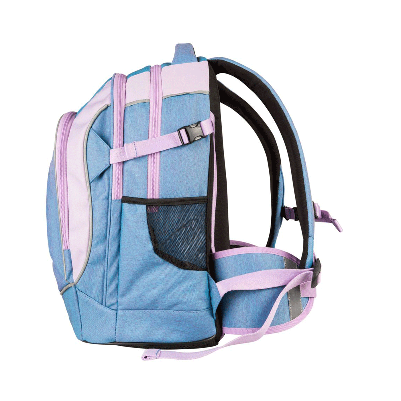 3 prostrana pretinca; vodonepropusni materijal ; tvrdi ergonomski oblikovan leđni dio ; mekane podesive naramenice ; prsni pojas; dodatni lumbalni pojas (može se ukloniti); nepromočivi materijal