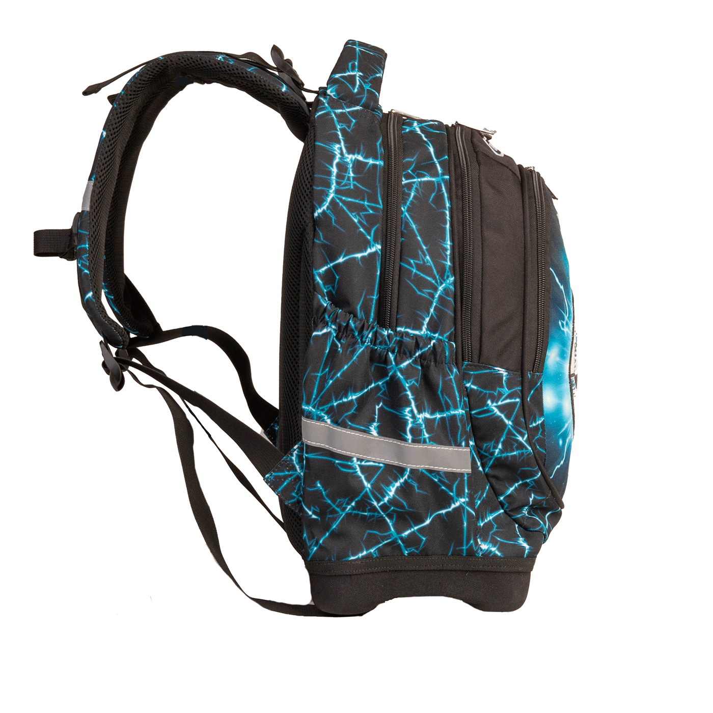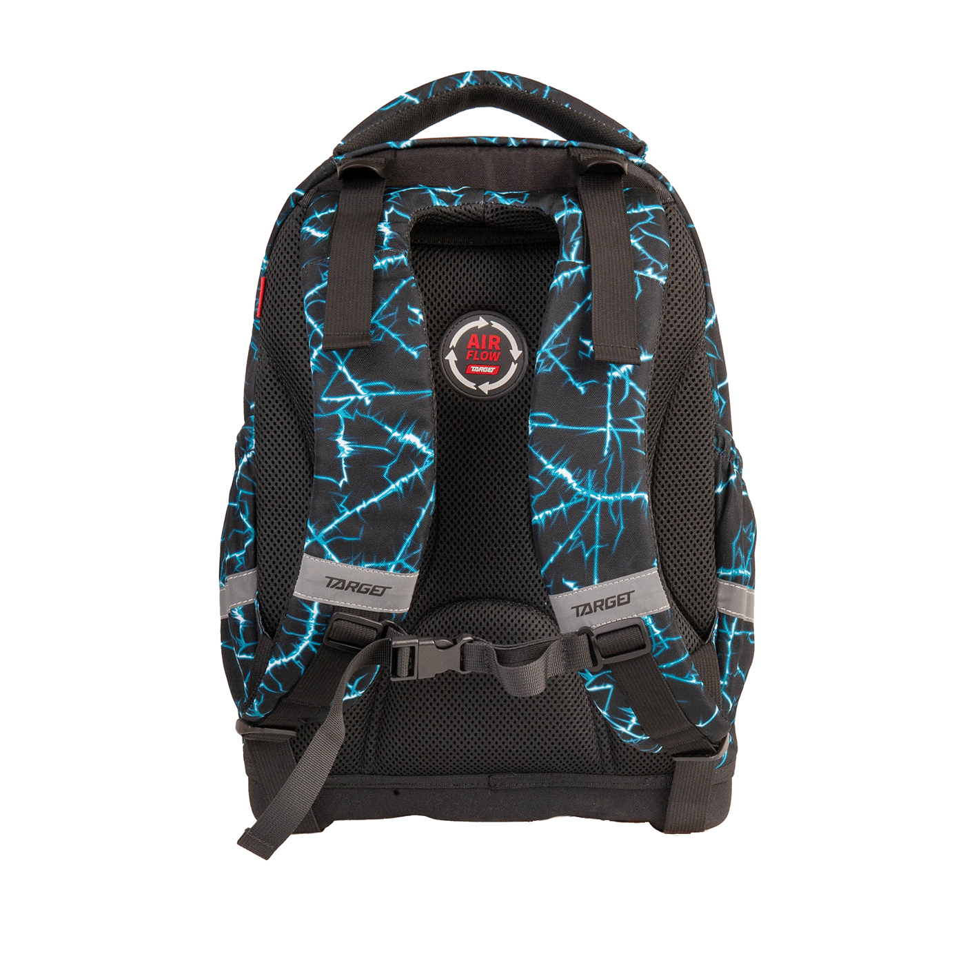 Ergonomski oblikovan leđni dio omogućava protok zraka. Anatomski oblikovane široke naramenice; remenčići za podešavanje; tvrda podnica, koja kod nošenja čuva knjige od oštećenja; snažno reflektirajući, sigurnosni dijelovi; izrađen je od nepromočivog materijala; veliki pretinci za knjige; pretinci na bočnim stranama za bocu.