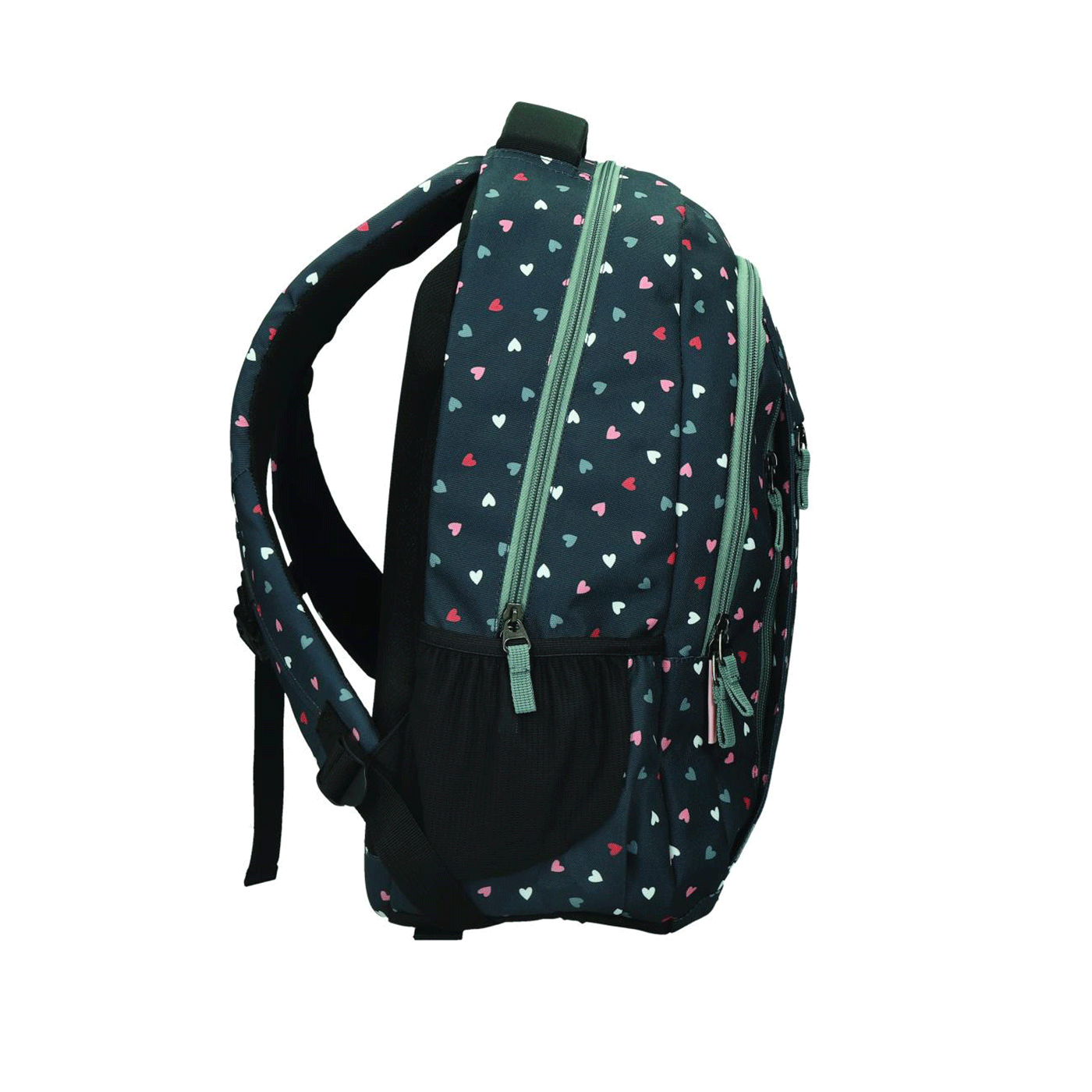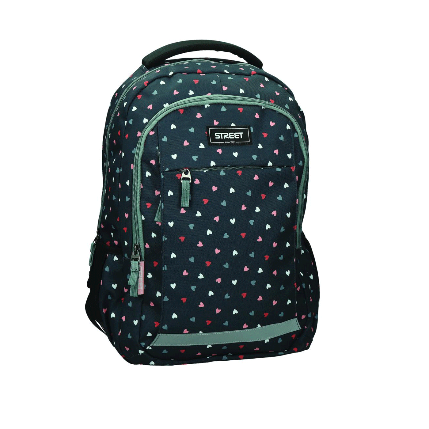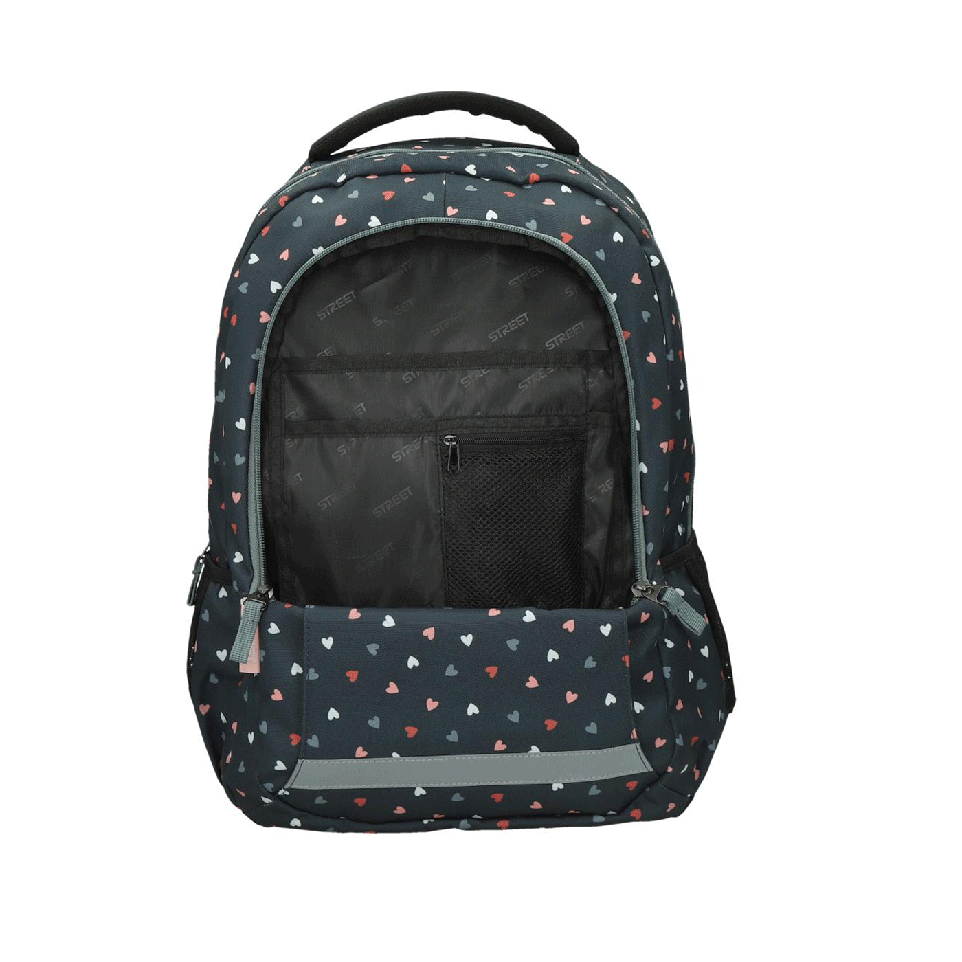 - ruksak ima pojačan i dodatno podstavljen leđni dio ; dva velika odjeljka zatvorena zip zatvaračima ; na prednjem dijelu mali zatvoreni džep i okomiti odjeljak sa strane