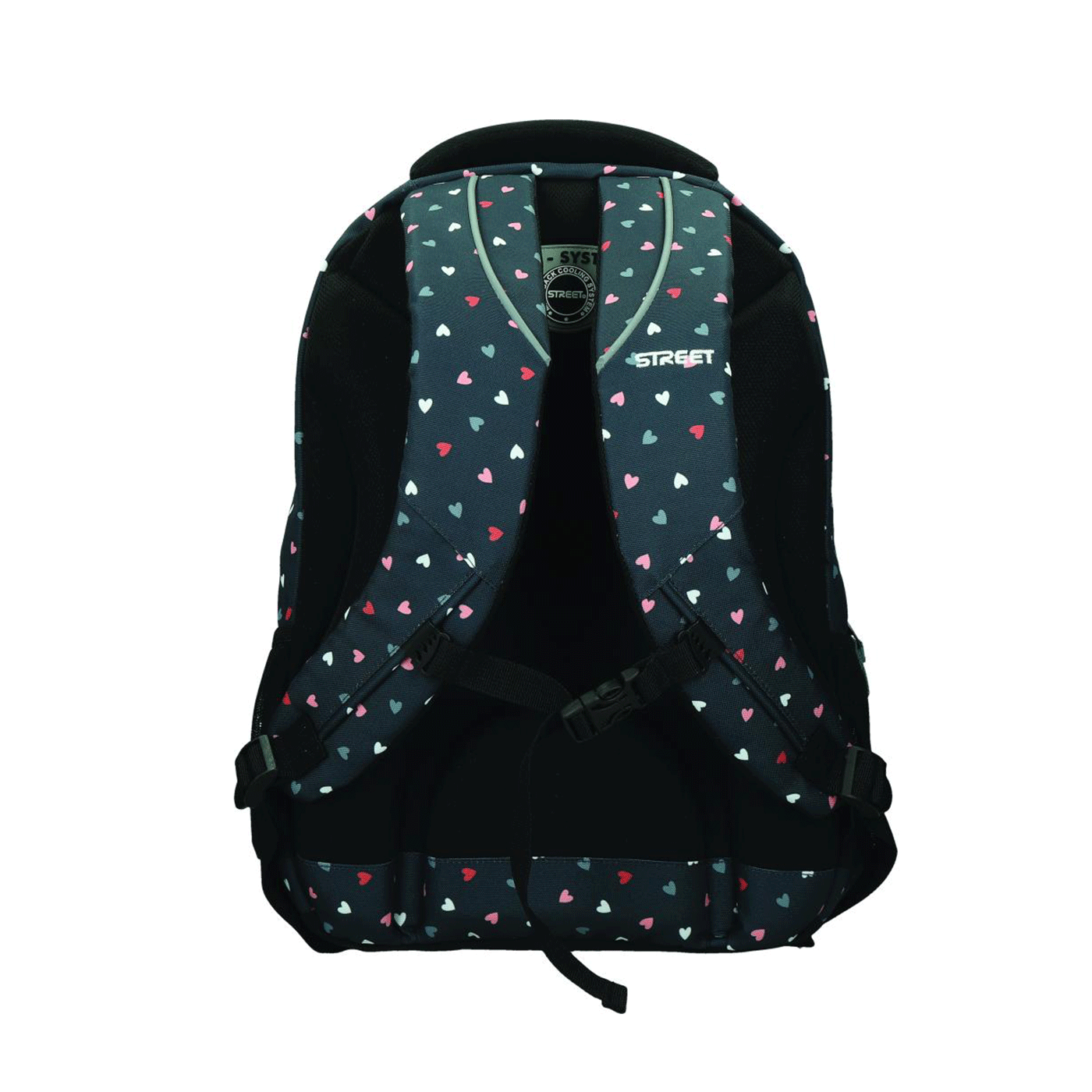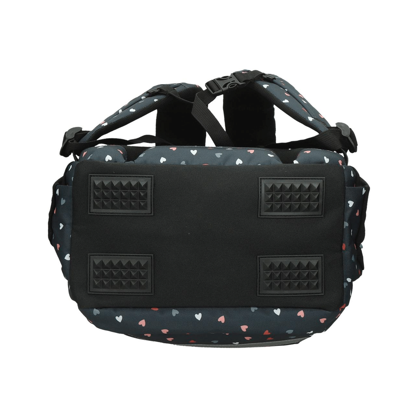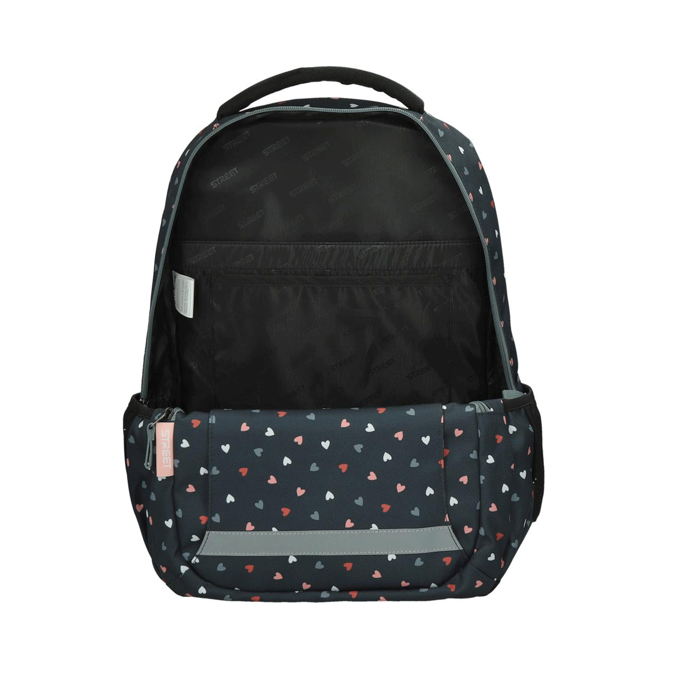 - ruksak ima pojačan i dodatno podstavljen leđni dio ; dva velika odjeljka zatvorena zip zatvaračima ; na prednjem dijelu mali zatvoreni džep i okomiti odjeljak sa strane
