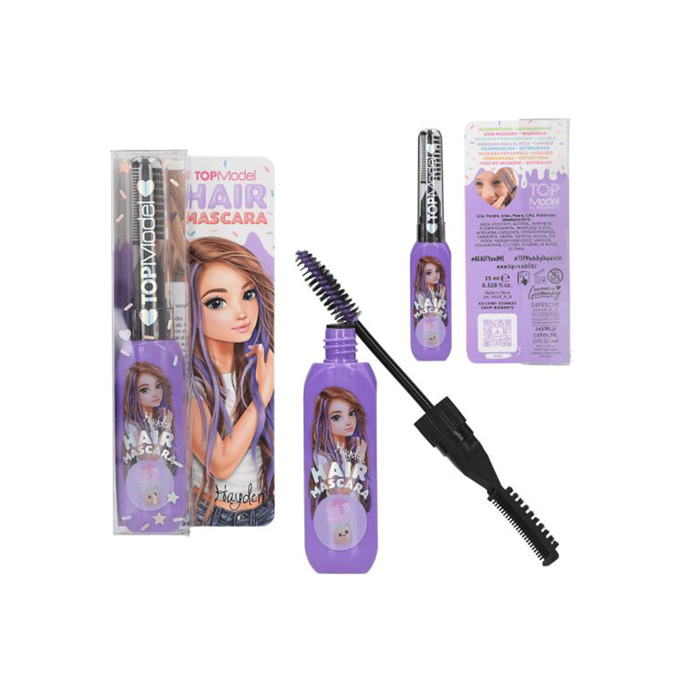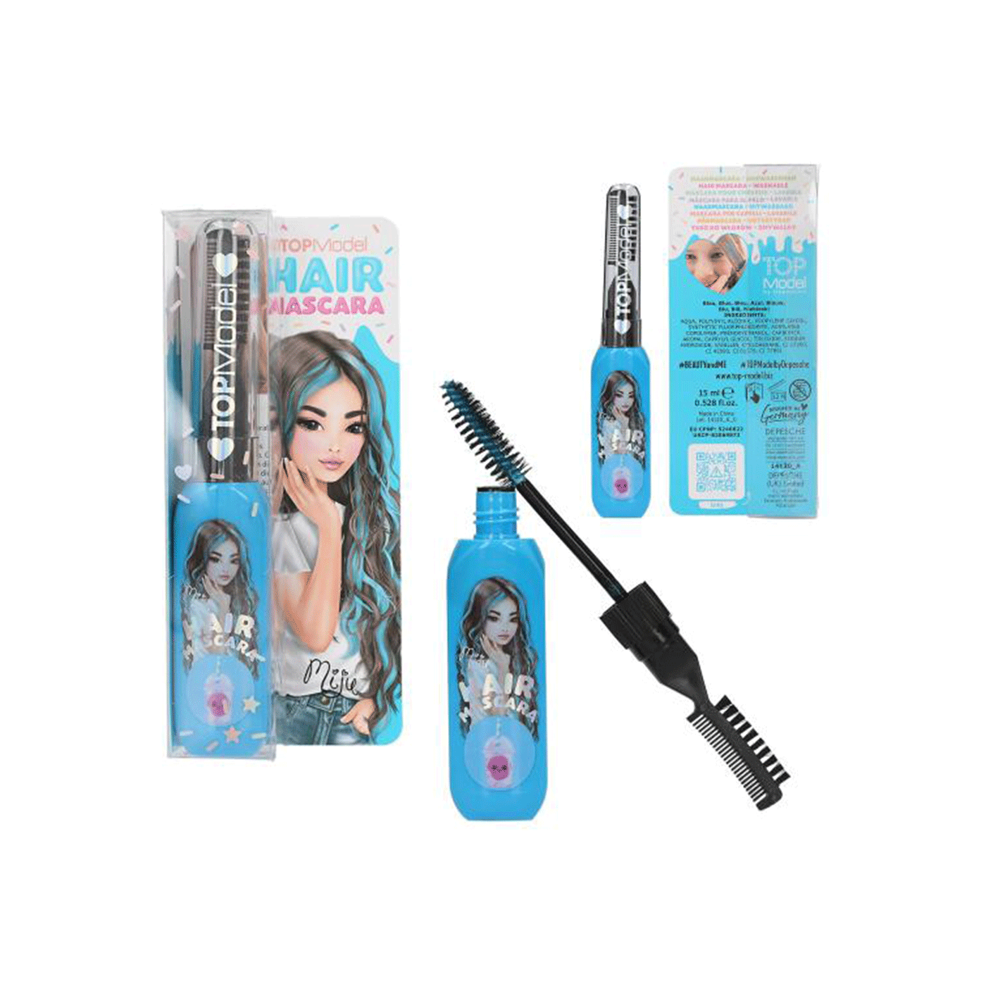 Za hladne naglaske boja u kosi: TOPModel maskara za kosu olakšava stvaranje prekrasnih pramenova. Nanesite boju kistom, a zatim raščešljajte malim češljićem u poklopcu. Dostupna je u ružičastoj, ljubičastoj i tirkiznoj boji (15 ml svaka).