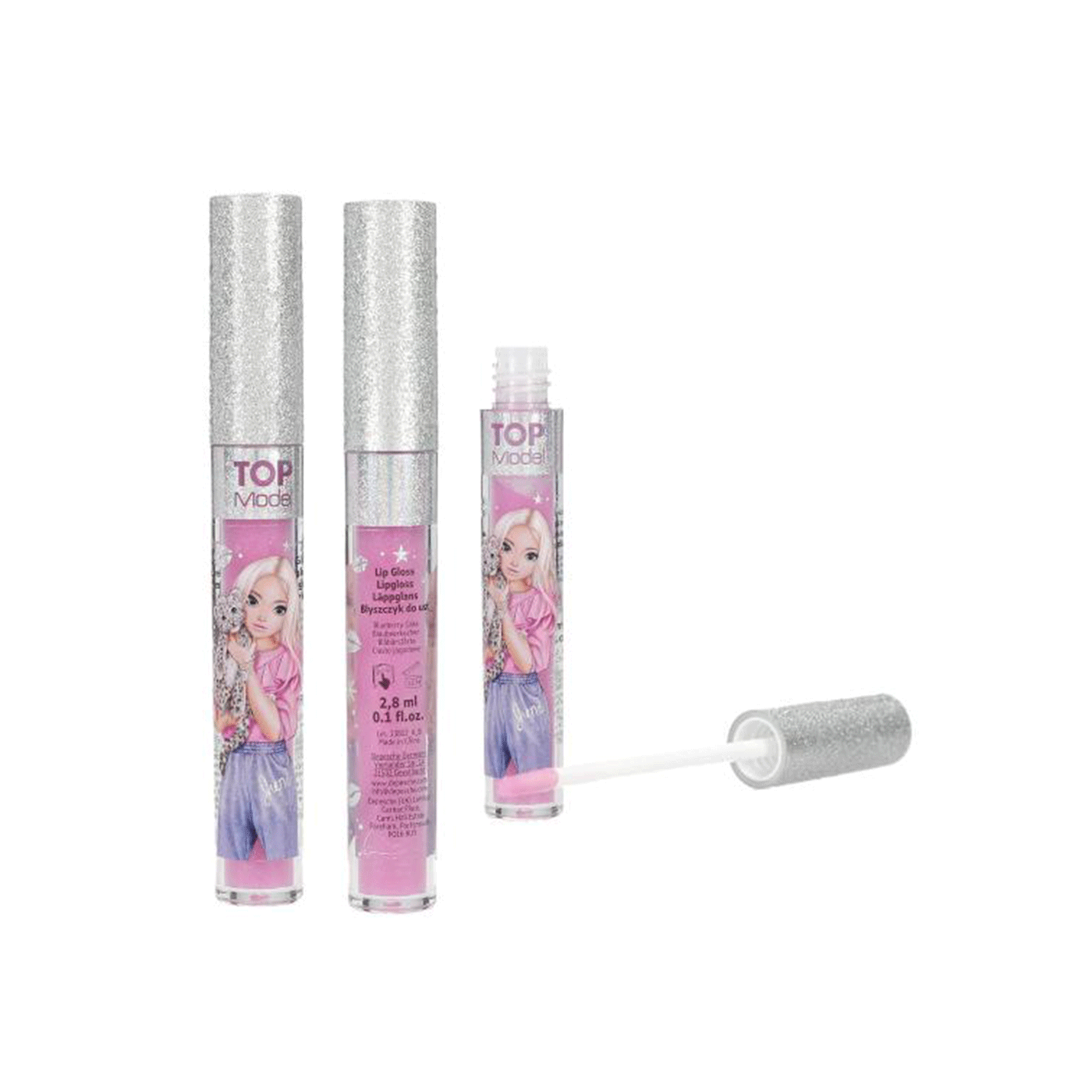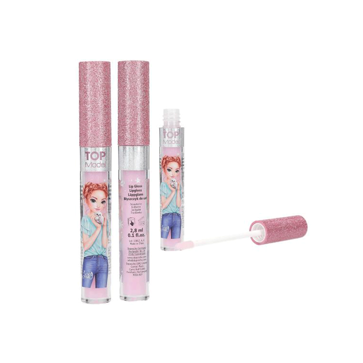 Sjajilo za usne TOP Model s prekrasnim svjetlucavim čepom dolazi u dvije boje i mirisa: jagoda i borovnica