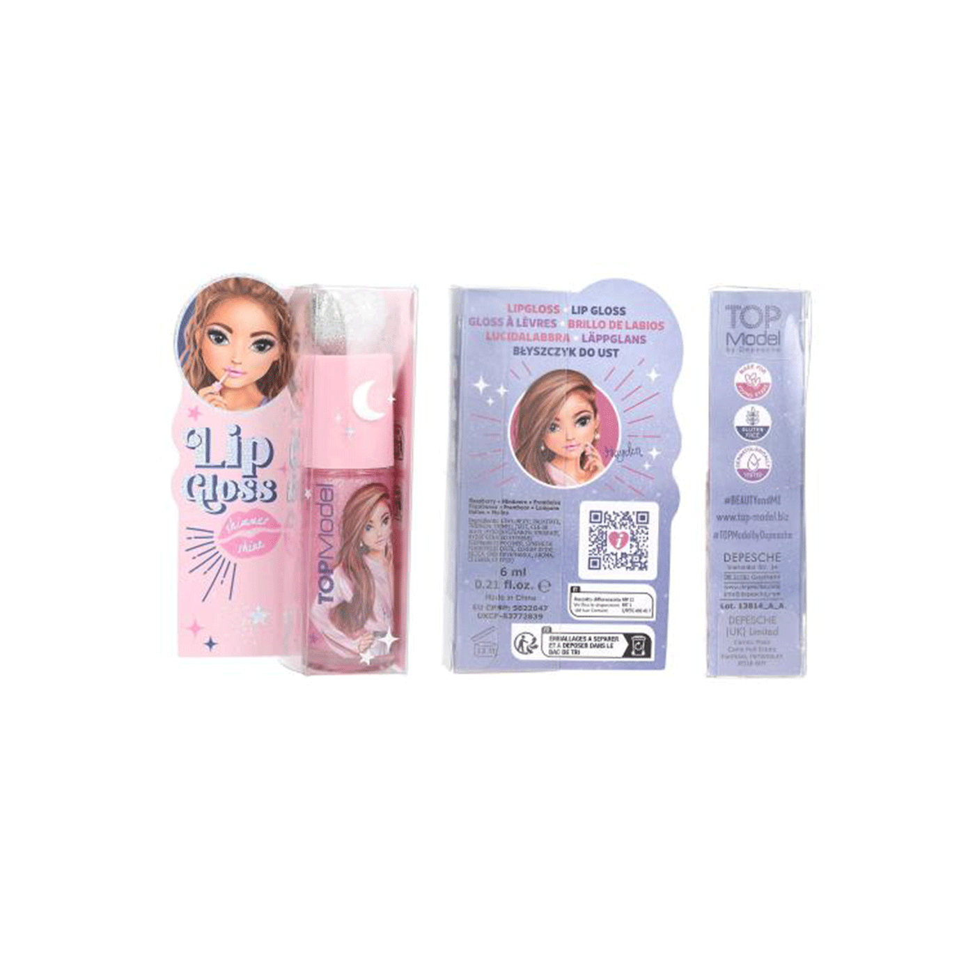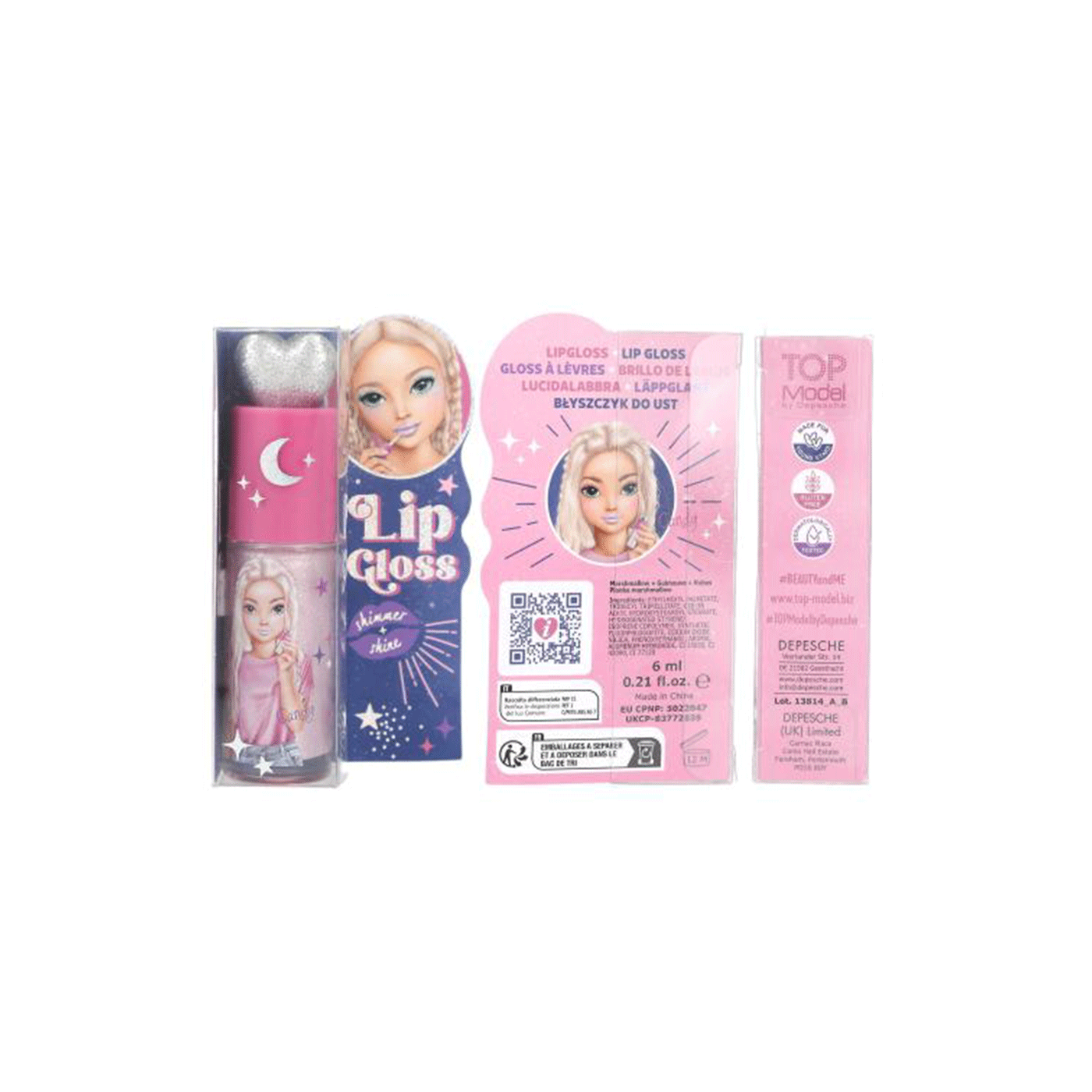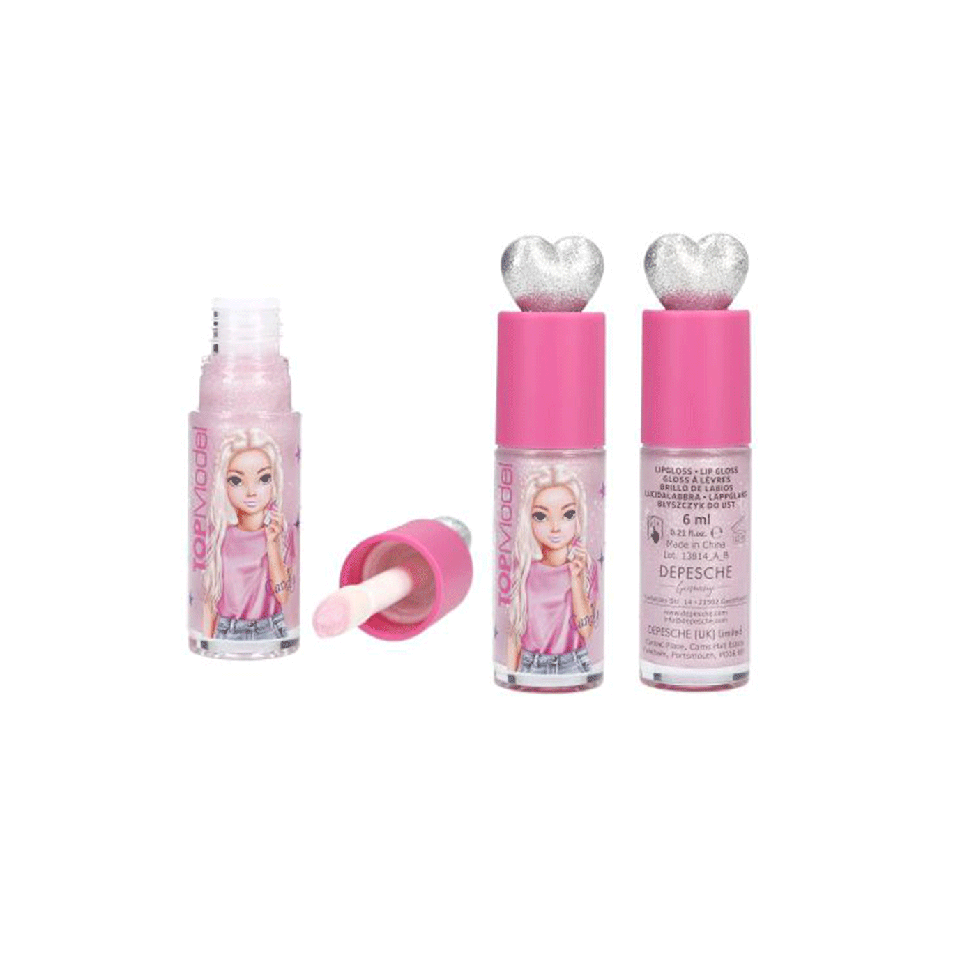 Ovo sjajilo za usne marke TOPModel dolazi u dvije različite boje: ružičastoj i ružičastoj (mirisi: sljez i malina). Obje imaju svjetlucavo srebrno srce na vrhu poklopca i prekrasne motive djevojčica na bočici. Sjajilo daje usnama blještavi sjaj.