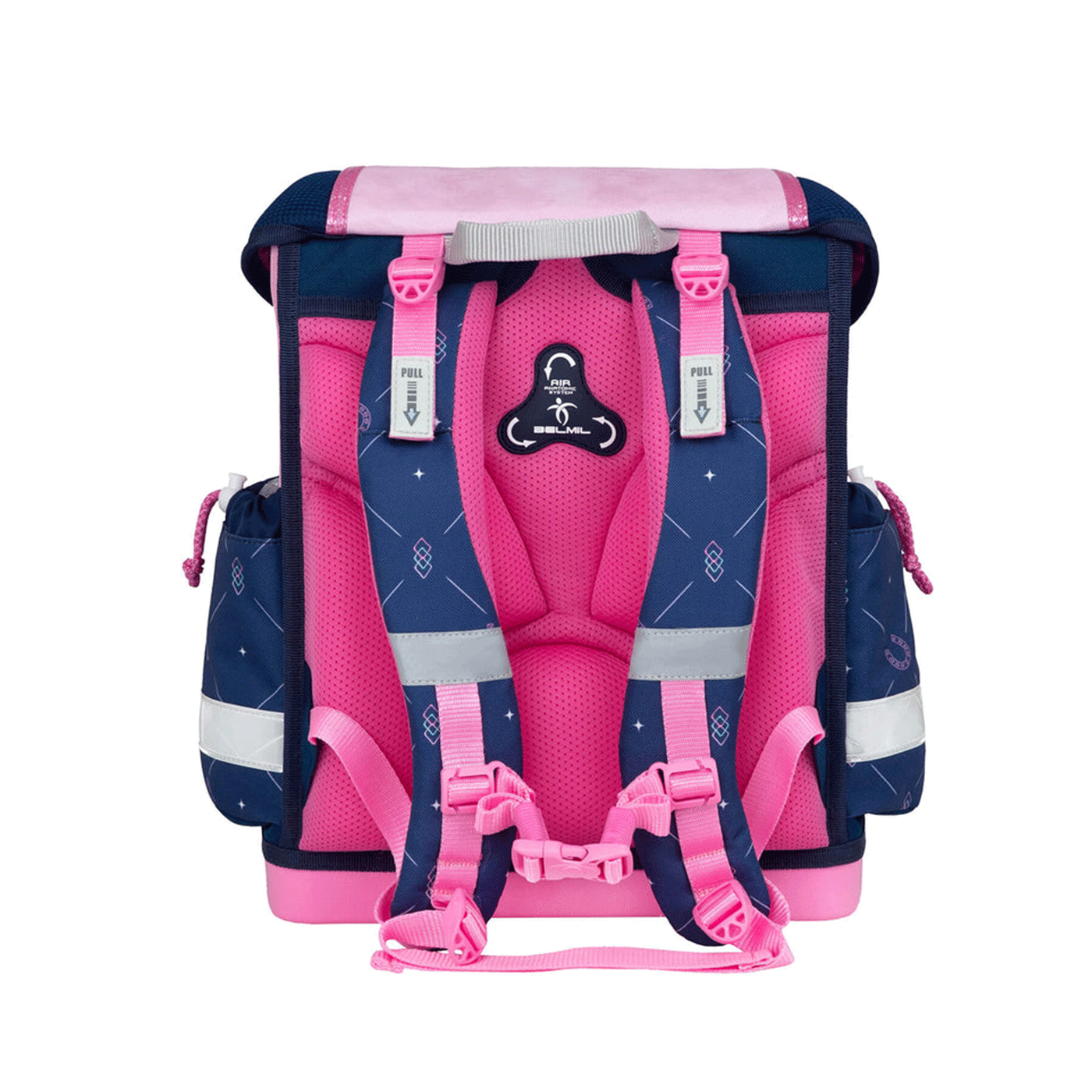 Ergonomski oblikovan leđni dio je podstavljen mrežastom prozračnom tkaninom, te je pritisak opterećene torbe minimalan. Naramenice su široke, mekane i lako podesive.