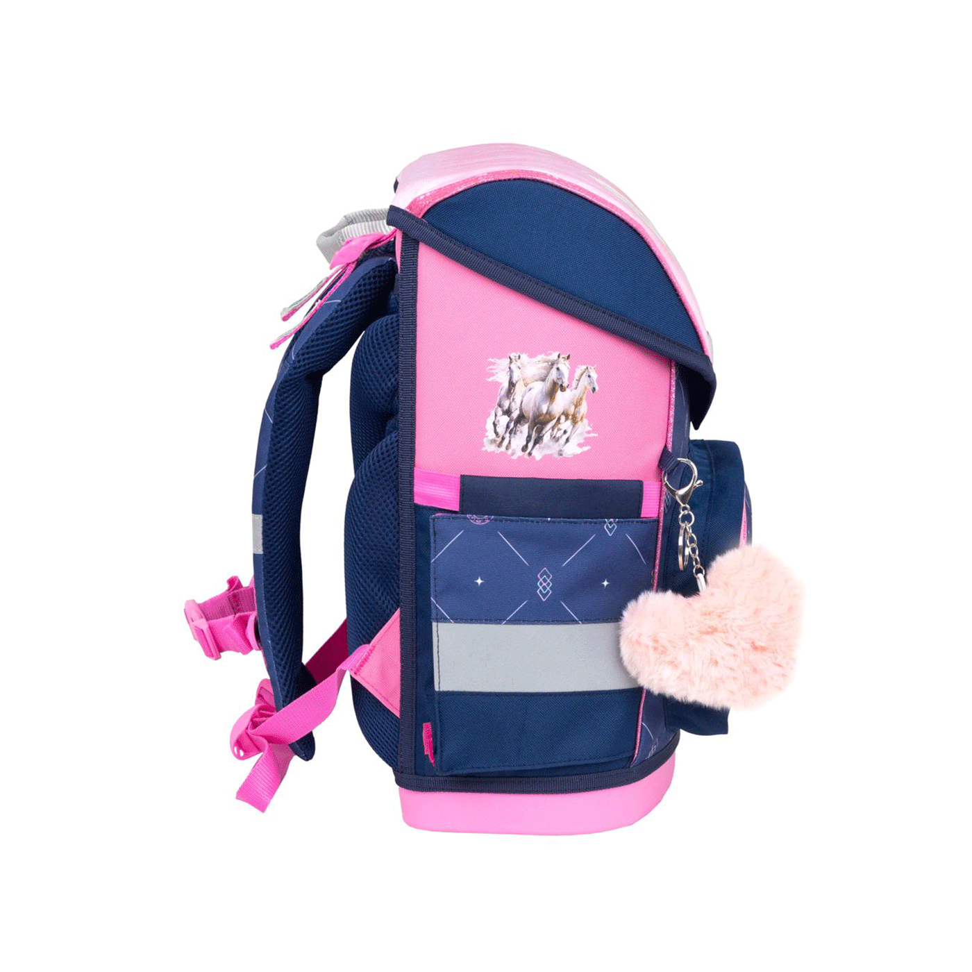 Tvrda podnica i stranice torbe, čuvaju knjige i bilježnice od oštećenja. Pregrade i pretinci u unutrašnjosti, omogućavaju lakšu organizaciju školskog pribora. Džepovi sa strane se mogu koristiti za nošenje bočice do veličine od 0,7 lit.